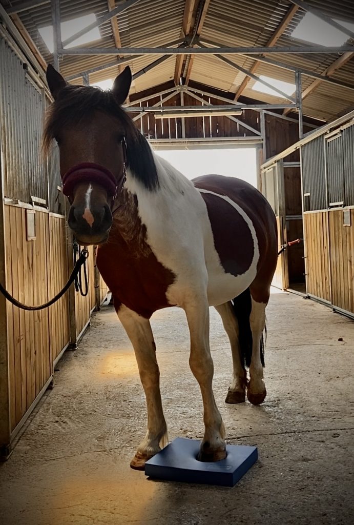 • Présenter un tapis de proprioception au cheval et le laisser gérer son équilibre (des résultats sont plus fréquents sur chevaux ferrés que pieds nus en général)