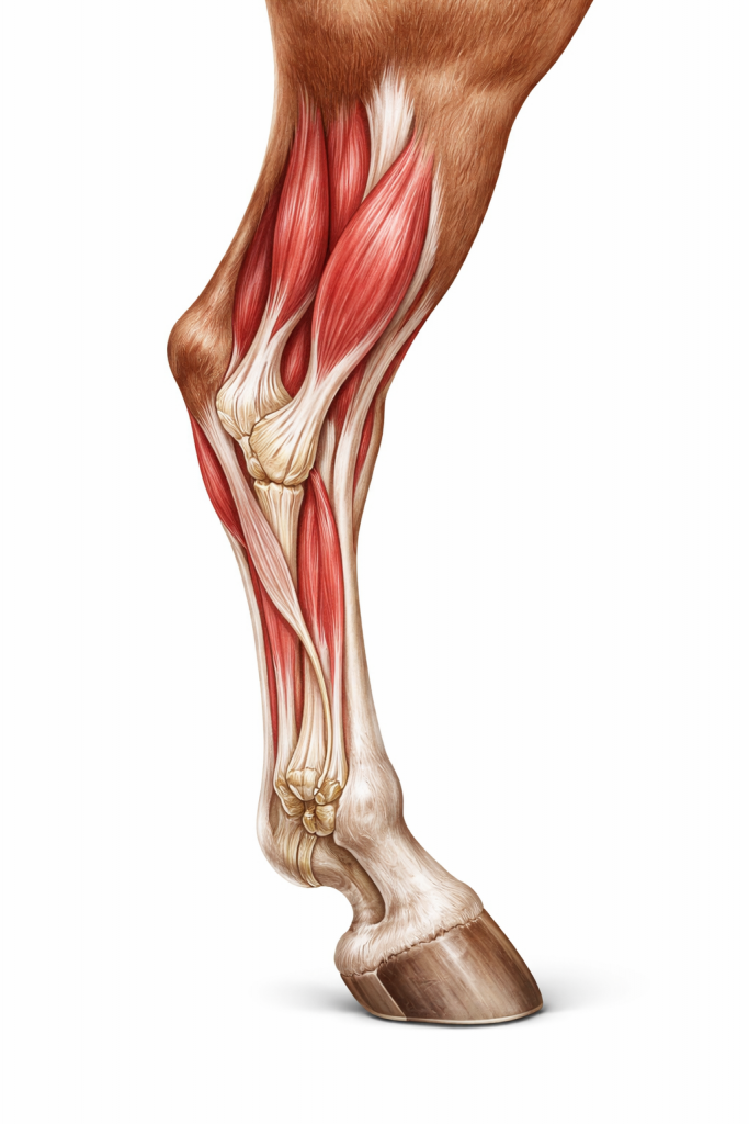 Même si le cheval semble « en forme » musculairement, ses tendons peuvent rester vulnérables aux blessures si le travail n’est pas progressif.